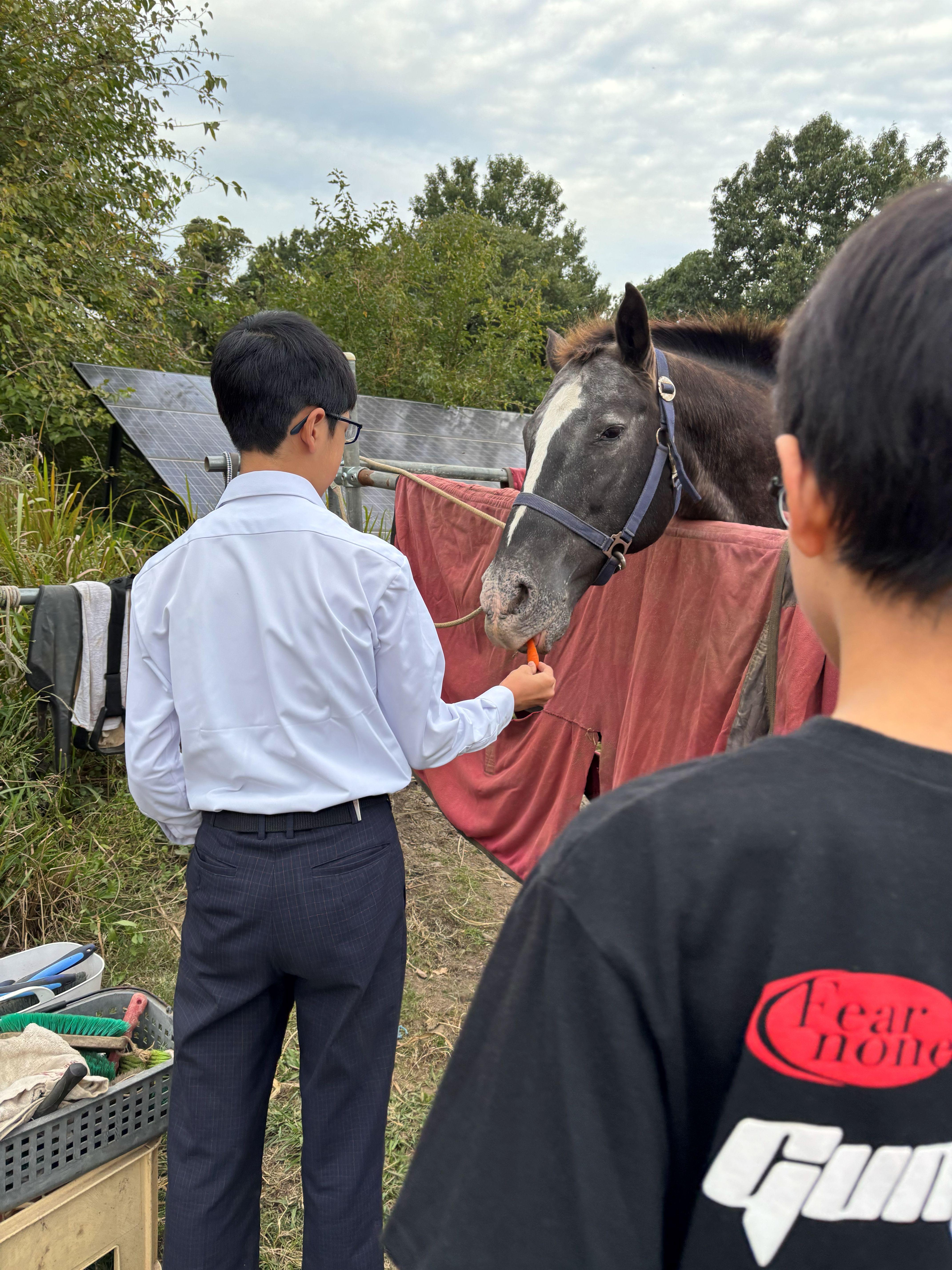 ・馬のブラッシング、お世話、餌やり